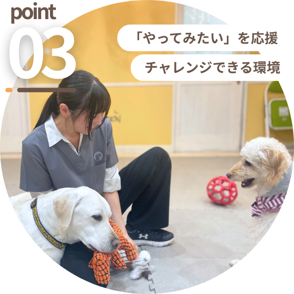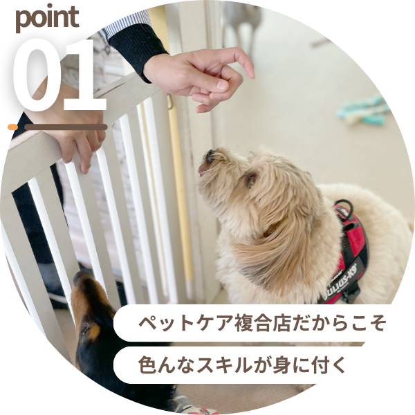 だからこそ、わんちゃんに関わる幅広い知識やスキルを、日常の中で自然と学ぶことができます。